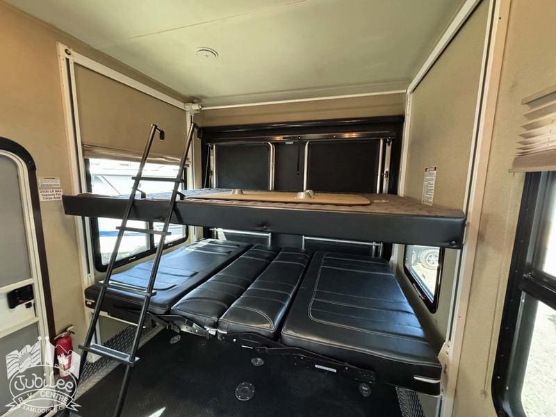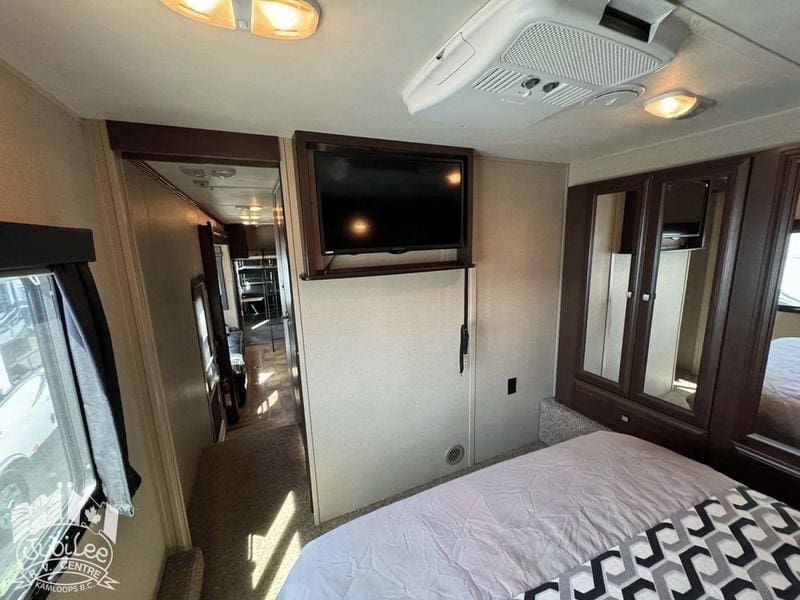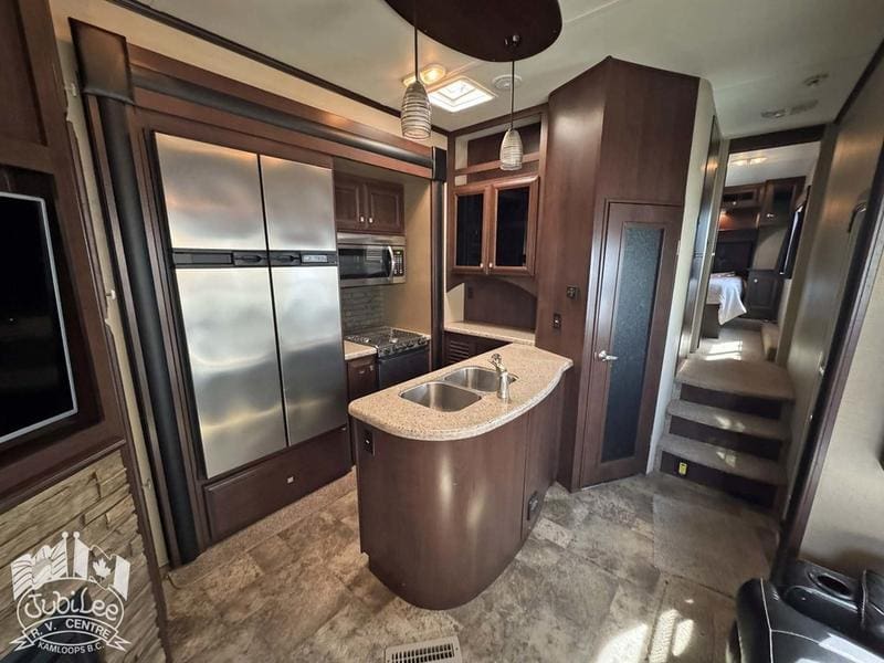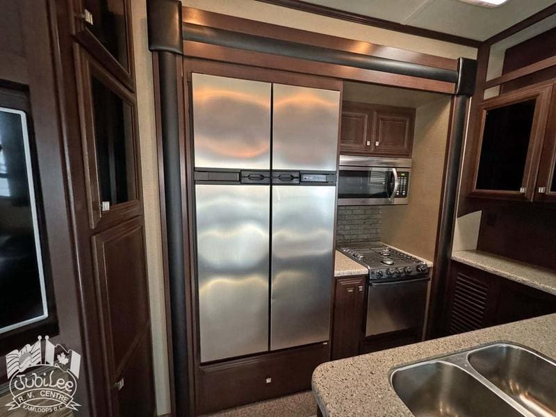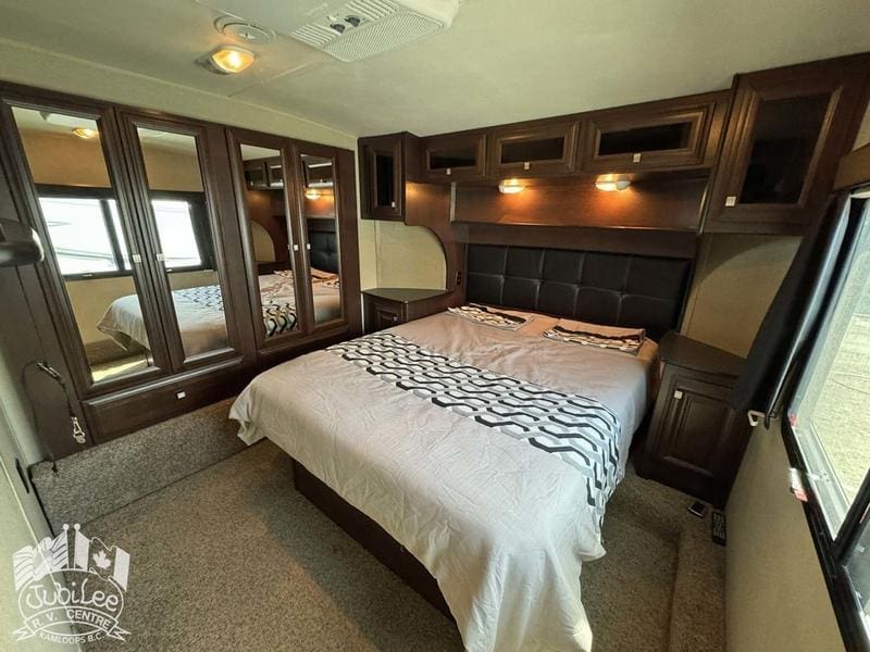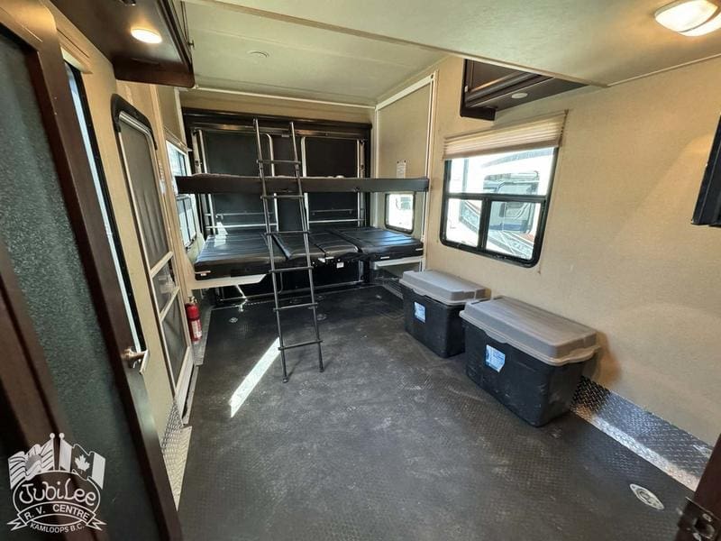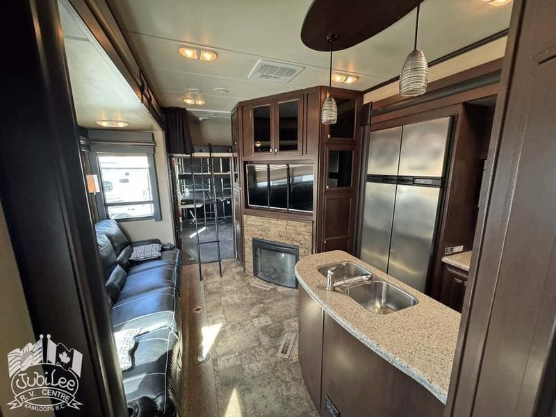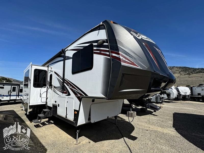 2015 Voltage 3805The Voltage 3800 brings the perfect mix of rugged toy hauler capability and luxury comfort—ready for adventure while keeping you relaxed at the end of the day.Interior:Air conditioning and furnace for year-round comfortDouble door refrigerator to keep food and drinks freshOven, stove with range hood, and microwave for versatile cookingWater heater for reliable hot waterThermal pane windows to improve insulationSkylights for natural light throughout4 TVs and a CD/DVD player for full entertainment optionsExterior:5500W Cummins generator for off-grid powerFour seasons package with heated holding tanks for all-weather useFiberglass front cap for durability and styleExterior speakers to enjoy music outdoorsPower awning for instant shade and outdoor comfortSani-flush system for easier tank maintenanceIncluded in $695 Doc Fee:Jubilee RV Advantage($1295 Value)- Complete dealer certified inspection- Gas certification with decal- Deep cycle 12V battery- Filled propane cylinders- 3-month limited warranty- Transfer of any existing warranty plans- Register life and disability plans- Lien searches from BC Registry- Declaration searches Canada wide- Lien registration fees- Courier costs for documents- Winterize/De-Winterize at time of purchase onlyPlatinum Club Membership(Priceless)- 10% discount on all parts department purchases- Priority service booking- No charge RV inspection(roof inspection, wheel lug torque, tire wear and pressure check, battery condition check)- Priority mobile RV service within 100km of our service center in Kamloops, BC.(call out charges apply unless on-site service selected with warranty protection)- Continual follow-up from our service department concerning our preventative maintenance scheduleJubilee RV Centre, Kamloops BC – Dealer #9719