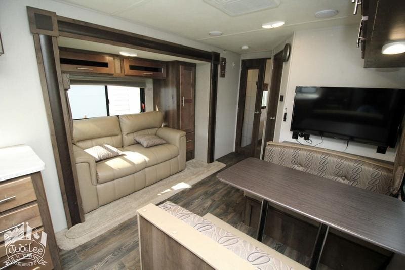 2019 Wildcat 245RGXComfortable and all-season ready, this fifth wheel offers convenience and functionality for any getaway.Interior Features:Air conditioning– Stay cool and comfortable during hot weather tripsRefrigerator– Keep your food fresh and drinks cold on the road21” oven– Perfect for baking meals while travelingStove with range hood– Cook with ease and vent out steam and smokeMicrowave– Quick and convenient meal prepDSI gas/electric water heater– Reliable hot water supply with multiple energy optionsFurnace– Keeps you warm in cooler weatherSkylights– Brighten up the interior with natural lightSofa bed– Extra sleeping space for guestsQueen walk-around bed– Comfortable and accessible sleeping arrangementLED lights– Energy-efficient lighting throughoutExterior Features:Hard wall– Durable and better insulation for varied weatherFour seasons package– Built for year-round comfortFiberglass front cap– Sleek design and added durabilityPower tongue jack– Easier hitching and levelingLadder– Roof access for maintenance and cleaningHeated holding tanks– Prevents freezing in cold climatesExterior speakers– Enjoy music and entertainment outdoorsPower awning– Quick shade and rain protection at the push of a buttonCable hookup and TV antenna– Stay connected and entertainedSani-flush– Easy and sanitary black tank cleaningIncluded in $695 Doc Fee:Jubilee RV Advantage($1295 Value)- Complete dealer certified inspection- Gas certification with decal- Deep cycle 12V battery- Filled propane cylinders- 3-month limited warranty- Transfer of any existing warranty plans- Register life and disability plans- Lien searches from BC Registry- Declaration searches Canada wide- Lien registration fees- Courier costs for documents- Winterize/De-Winterize at time of purchase onlyPlatinum Club Membership(Priceless)- 10% discount on all parts department purchases- Priority service booking- No charge RV inspection(roof inspection, wheel lug torque, tire wear and pressure check, battery condition check)- Priority mobile RV service within 100km of our service center in Kamloops, BC.(call out charges apply unless on-site service selected with warranty protection)- Continual follow-up from our service department concerning our preventative maintenance scheduleJubilee RV Centre, Kamloops BC – Dealer #9719