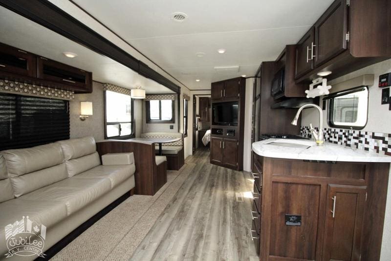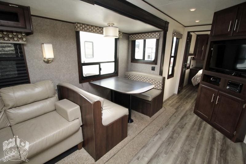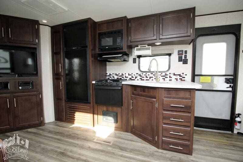 2019 Jay Flight 285RLSW Travel TrailerThe 2019 Jay Flight 285RLSW offers a spacious and comfortable living space, equipped with all the amenities for a relaxing and enjoyable getaway.Interior HighlightsComfortable Living:Air conditioning, furnace, and fans provide year-round comfort.Well-Equipped Kitchen:Double door refrigerator, oven and stove with range hood, microwave, and water heater for easy cooking and convenience.Entertainment Ready:2 TVs, CD/DVD player, and swivel recliners for a cozy and enjoyable experience.Safety and Comfort:CO2/propane/smoke detectors, night shades, and a walk-around bed for added peace of mind.Exterior FeaturesOutdoor Convenience:Barbecue with hookup, power tongue jack, stabilizer jacks, spare tire, and ladder for easy setup and outdoor living.Enhanced Comfort:Power awning, cable hookup, and TV antenna for added convenience when camping.Easy Maintenance:Exterior shower and sani-flush for hassle-free clean-up.The 2019 Jay Flight 285RLSW is the ideal travel trailer, offering comfort, convenience, and practicality for your next adventure.Included in $695 Doc Fee:Jubilee RV Advantage($1295 Value)- Complete dealer certified inspection- Gas certification with decal- Deep cycle 12V battery- Filled propane cylinders- 3-month limited warranty- Transfer of any existing warranty plans- Register life and disability plans- Lien searches from BC Registry- Declaration searches Canada wide- Lien registration fees- Courier costs for documents- Winterize/De-Winterize at time of purchase onlyPlatinum Club Membership(Priceless)- 10% discount on all parts department purchases- Priority service booking- No charge RV inspection(roof inspection, wheel lug torque, tire wear and pressure check, battery condition check)- Priority mobile RV service within 100km of our service center in Kamloops, BC.(call out charges apply unless on-site service selected with warranty protection)- Continual follow-up from our service department concerning our preventative maintenance scheduleDealer #9719