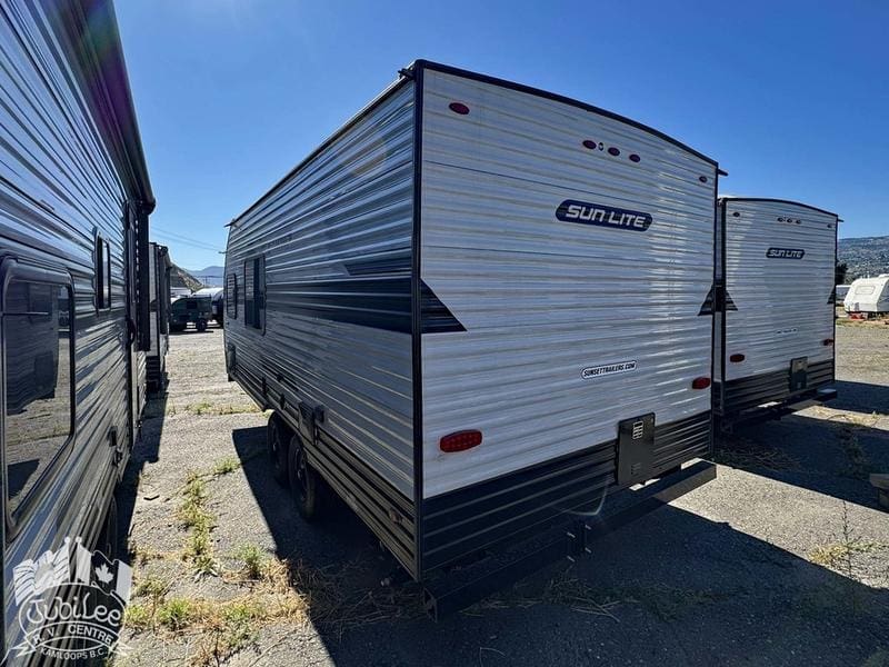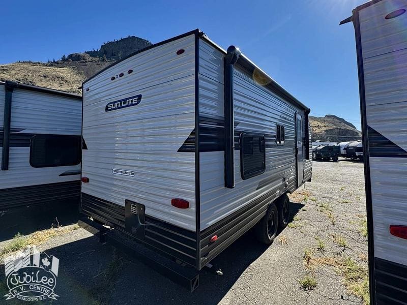 2026 Sun Lite 21DB LTDThis lightweight bunk model is ready for family getaways, with smart features and a compact design that tows with ease.Included Options:3-burner stove with oven21DB Appliance Package:12V refrigeratorDSI gas water heater8K BTU A/CMicrowaveRange hood with fan and light21DB Convenience Package:Bluetooth radioSpare tire with carrierStabilizer jacksLED interior lightingPower awning13” custom sport wheelsExterior LED light stripTinted safety glass windowsIncluded in $695 Doc Fee:Jubilee RV Advantage($1295 Value)- Complete dealer certified inspection- Deep cycle 12V battery- Filled propane cylinders- Register manufacturer warranty- Register any applicable extended warranty plans- Register life and disability plans- Lien registration fees- Courier costs for documents- Winterize/De-Winterize at time of purchase onlyPlatinum Club Membership(Priceless)- 10% discount on all parts department purchases- Priority service booking- No charge RV inspection(roof inspection, wheel lug torque, tire wear and pressure check, battery condition check)- Priority mobile RV service within 100km of our service center in Kamloops, BC.(call out charges apply unless on-site service selected with warranty protection)- Continual follow-up from our service department concerning our preventative maintenance scheduleJubilee RV Centre, Kamloops BC – Dealer #9719